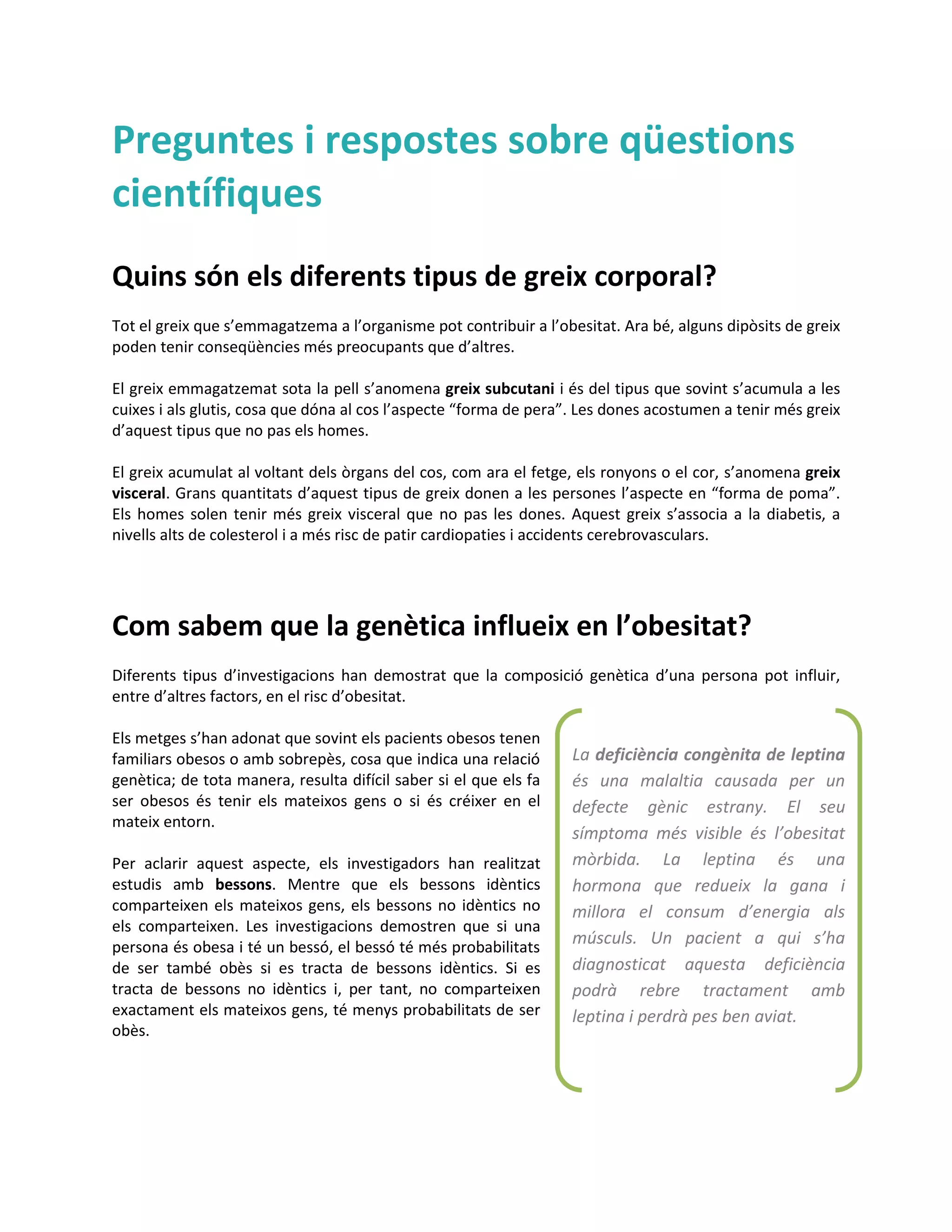 L’obesitat és un fenomen en alça arreu del món. Amoïnats per l’amenaça que suposa a llarg termini per a la salut, metges i científics intenten entendre què fa que la gent esdevingui obesa, de manera que puguin dissenyar estratègies de prevenció i tractament més efectives.