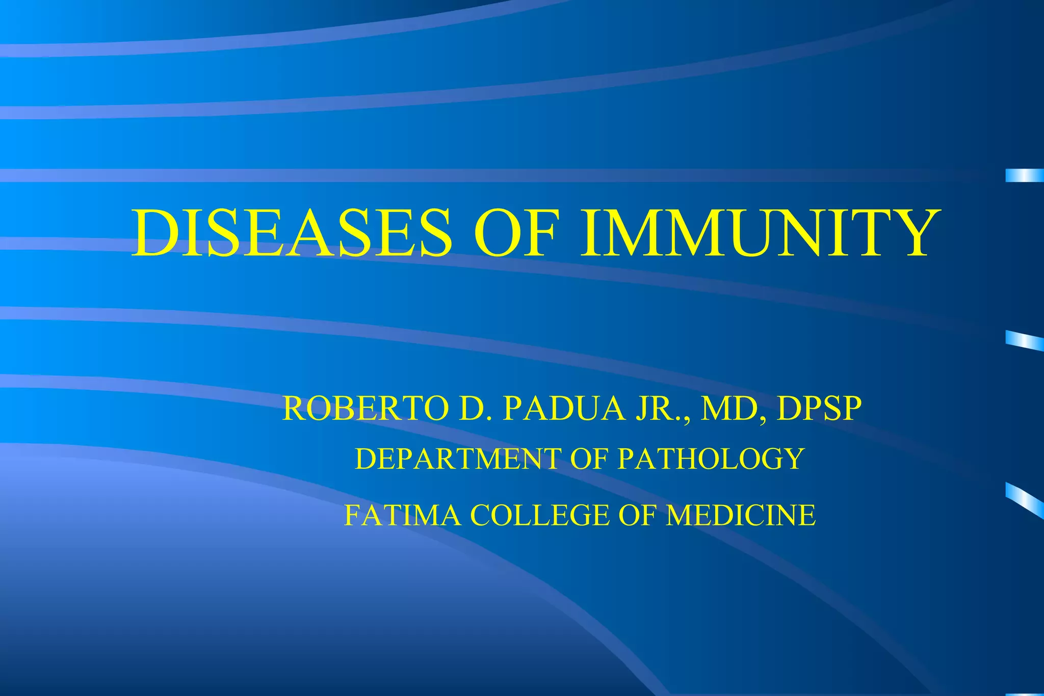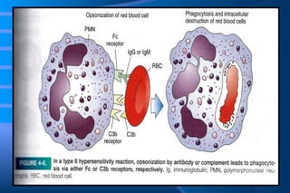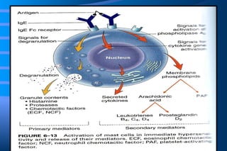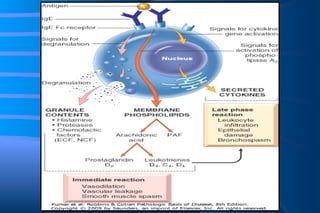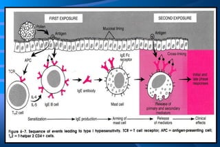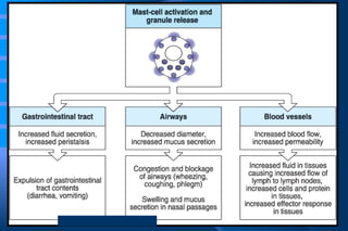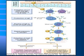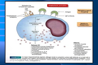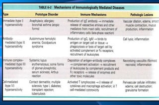 The document discusses diseases of immunity, including hypersensitivity reactions and autoimmune diseases. It describes the innate and adaptive immune system, cells involved like T cells, B cells, cytokines, and histocompatibility molecules. Hypersensitivity reactions are classified and immediate (Type I) hypersensitivity is explained, where re-exposure to an antigen leads to rapid allergic reactions mediated by IgE and mast cells.