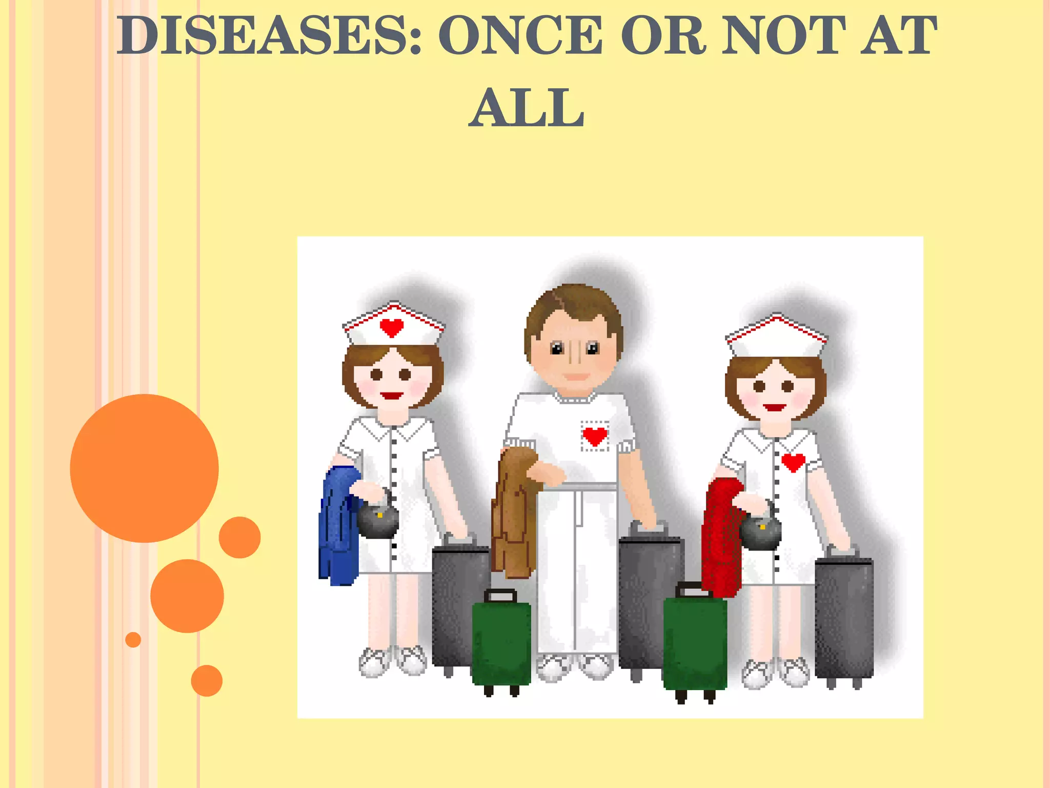 There are some diseases that humans can only catch once because after the initial infection, the body's immune system remembers how to fight the disease if exposed again. Examples include chickenpox. Other diseases like the common cold or strep throat can infect people many times because there are multiple variants of the disease, so the immune system may not recognize repeat infections. Still other diseases can be prevented altogether by vaccines, which expose the body to a harmless version of the disease, allowing it to develop protective antibodies before actual exposure.