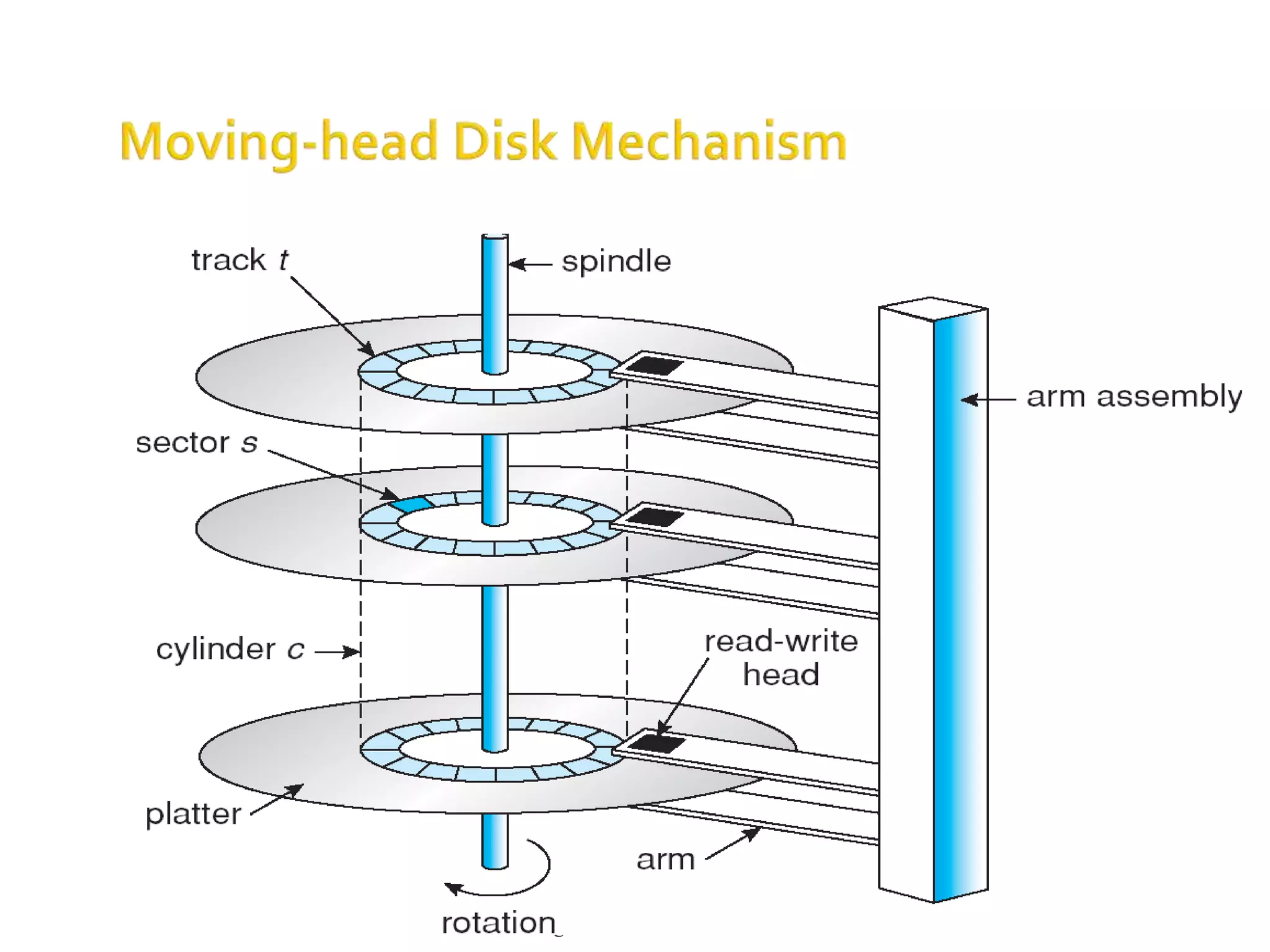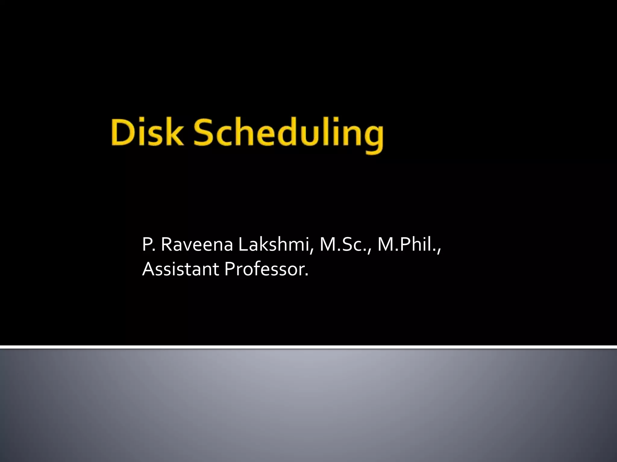 This document discusses disk scheduling algorithms used by operating systems to optimize disk access time and bandwidth. It explains that disk requests are queued and disks have seek time and rotational latency when accessing data. It then describes common first-come, first-served scheduling algorithms like SSTF, SCAN, C-SCAN, and LOOK that aim to minimize disk head movement and keep the disk busy by selecting the next request that is closest to the current head position.