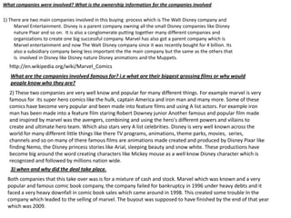 The Walt Disney Company bought Marvel Entertainment for $4 billion. Disney is a large conglomerate that owns many smaller companies, while Marvel was previously an independent comic book publisher that faced bankruptcy in the 1990s. The deal increased Disney's influence in the film industry by gaining the rights to popular Marvel characters like Iron Man and Avengers, allowing Disney to appeal to both male and female audiences. However, Disney does not own the full rights to all Marvel characters like Spider-Man. The acquisition was a major event that impacted ownership structures in Hollywood.
