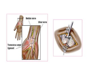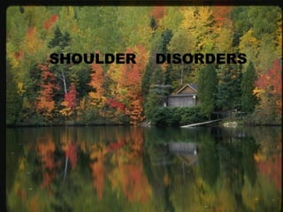 The document discusses disorders of the upper limb, including the shoulder, elbow, wrist, and hand. It provides details on anatomy, common conditions such as frozen shoulder, lateral epicondylitis, carpal tunnel syndrome, and treatments including injections, physical therapy, and surgery. It comprehensively covers the assessment and management of various musculoskeletal issues in the upper extremity.
