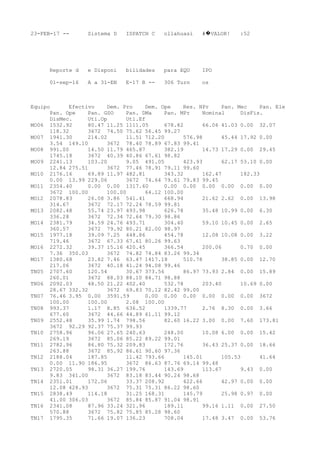 This document provides availability data for equipment from September 1, 2016 to June 31, 2017. It lists 22 pieces of equipment (identified as MO06 through TO22) and includes statistics on their effective and operational demand, availability, utilization rates, and time spent in various maintenance states over the reporting period.