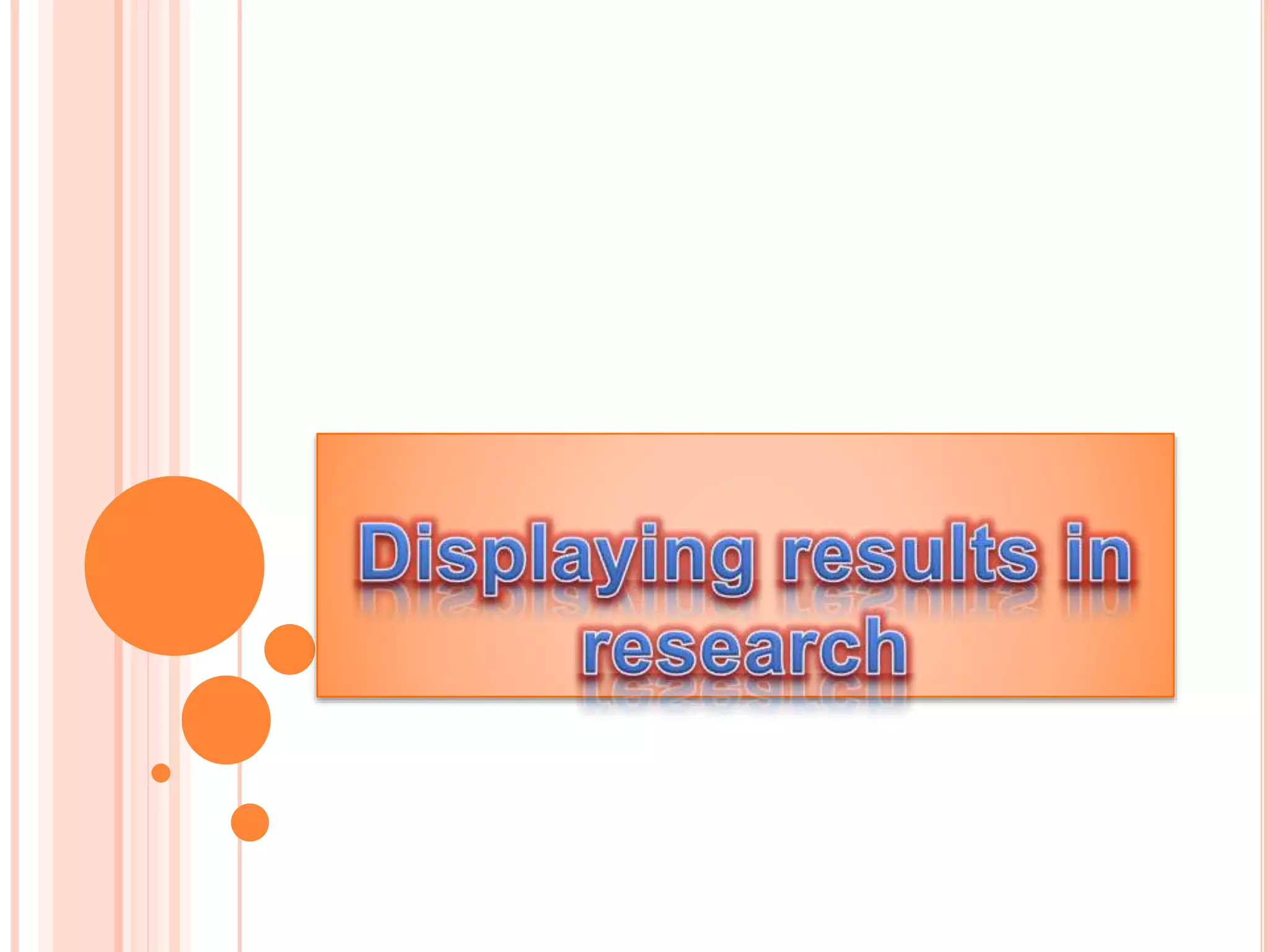This document provides guidance on displaying results and data through tables and figures. It discusses electronic and manual ways of displaying data, such as through word processing programs, spreadsheets, or tables and figures. The document offers general guidance on designing tables and figures for purposes like exploration, communication and storage. It provides tips on formatting tables and figures clearly and concisely with proper labeling, font sizes, and relevant information. Specific guidance is given around formatting tables, including ensuring logical layout, comparability of values, standard forms, and explanatory titles and headings.