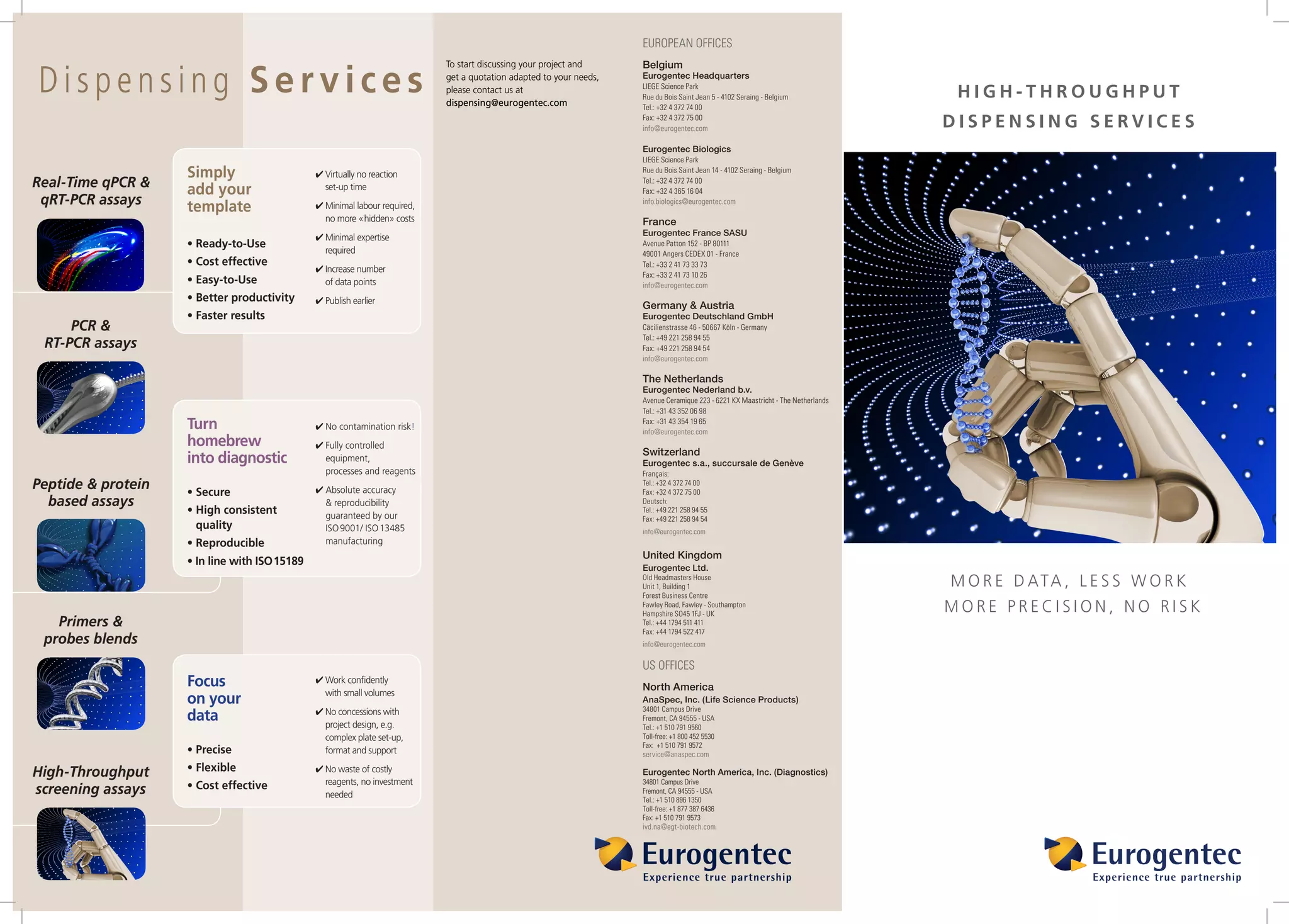 - Services can adapt assays of any size or format from single tubes to multiwell plates for research to diagnostic applications.