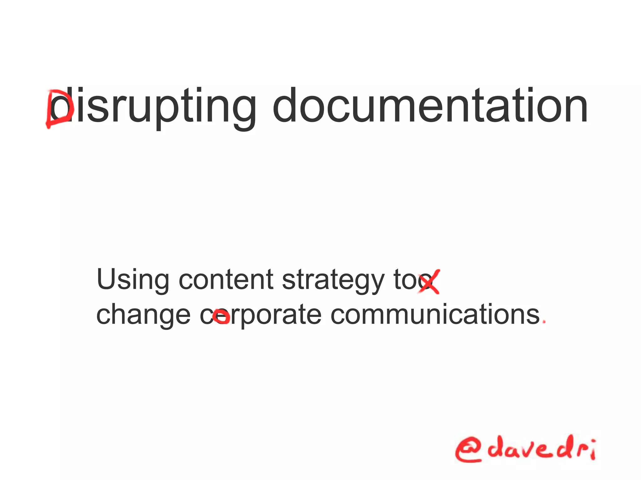 The document discusses a transformative approach to corporate communications and documentation by a team of content authors at a major open source software company, emphasizing a shift from traditional processes to customer-focused strategies. It covers the creation of an internal project aimed at modernizing and streamlining documentation practices, highlighting the importance of iteration, collaboration, and testing in achieving success. Key insights include the necessity for team engagement, the challenges of disruption, and the evolution of documentation from detailed feature capture to customer-centric content.