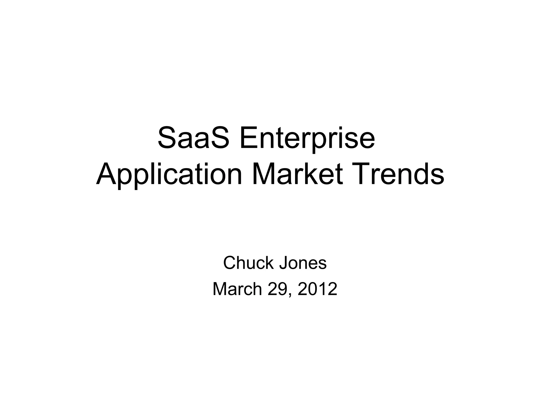 The SaaS enterprise application market is projected to grow significantly, with a CAGR of 26.4%, potentially reaching $53.6 billion by 2015. There is increasing adoption, with 38% of enterprises expecting to deploy over half their applications on cloud platforms within three years, and SaaS applications' share of enterprise application purchases expected to rise from 9.6% to 13.8%. Overall, SaaS solutions are becoming competitive alternatives to traditional on-premise applications and will cover various business needs across industries.