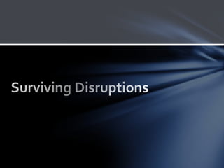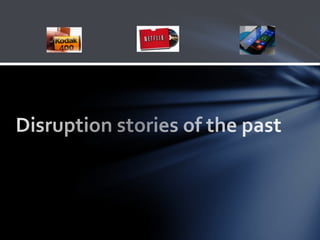 The document discusses the concept of disruptive innovation and presents historical examples such as Kodak, Nokia, and Netflix, illustrating how established companies failed to adapt to market changes. It outlines the characteristics of disruptive innovations and emphasizes the necessity for companies to recognize and respond to disruptions in order to survive. Furthermore, it offers strategic advice on how to sustain innovation and adapt to new challenges in a rapidly evolving market.