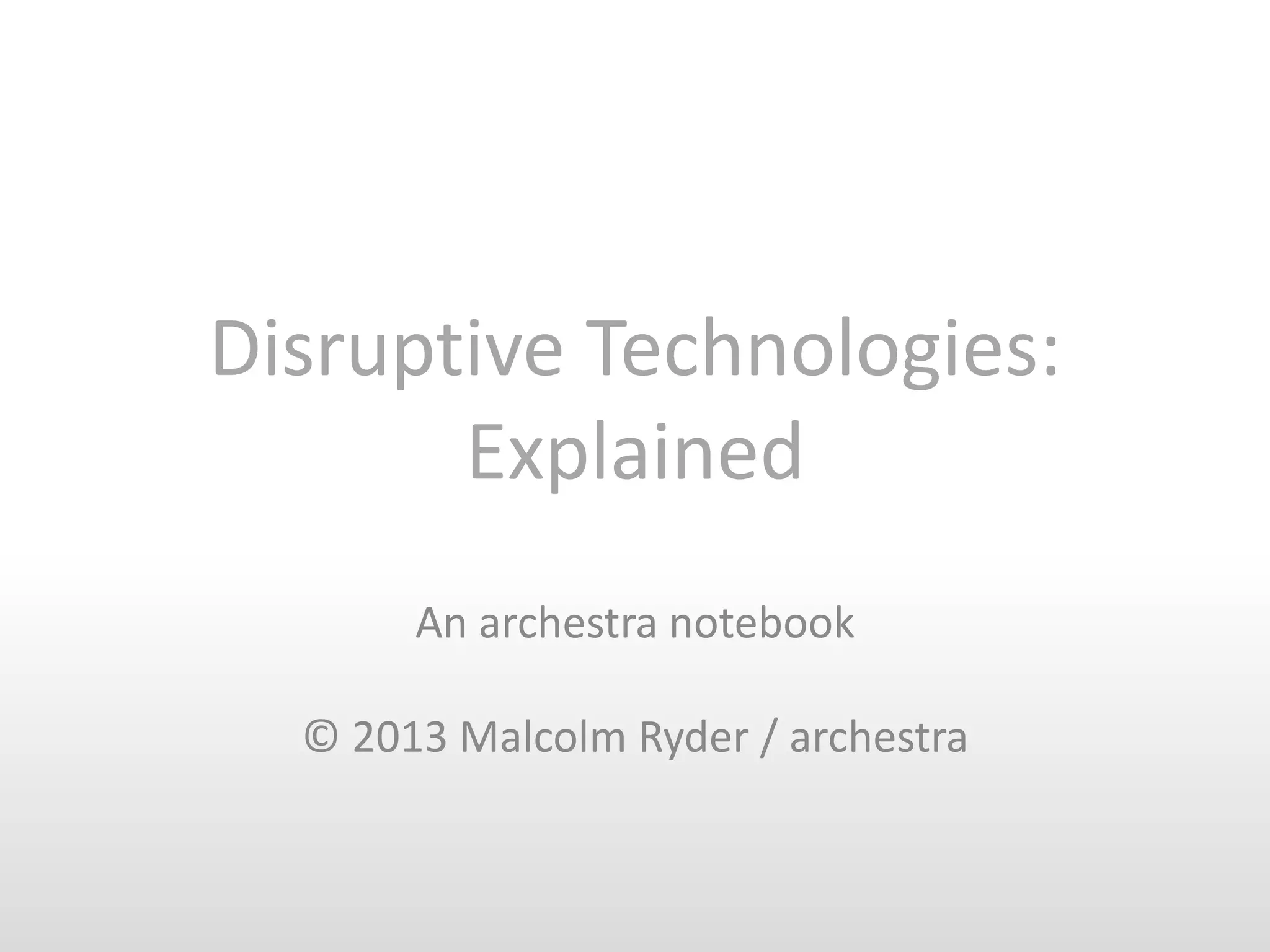 The document explores the concept of disruptive technologies and their anticipated impact on markets and businesses, citing a list of 50 emerging technologies across various categories. It emphasizes the significance of understanding how these technologies interact within a system of commerce, detailing their potential to reshape market dynamics and business operations. Additionally, it highlights strategies for navigating the inevitable disruptions and adapting to new market conditions.