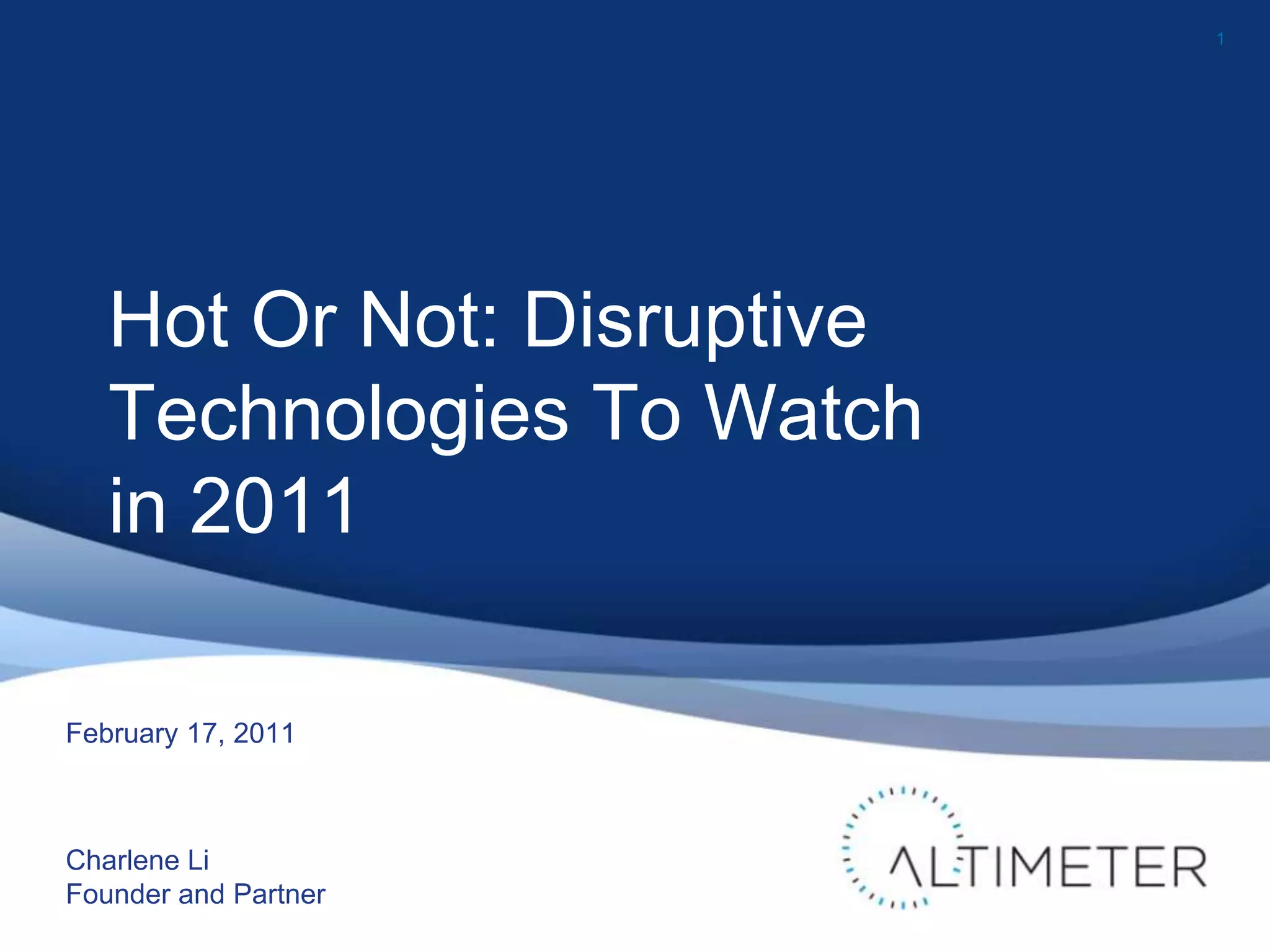 This document discusses 10 emerging disruptive technologies to watch in 2011:
