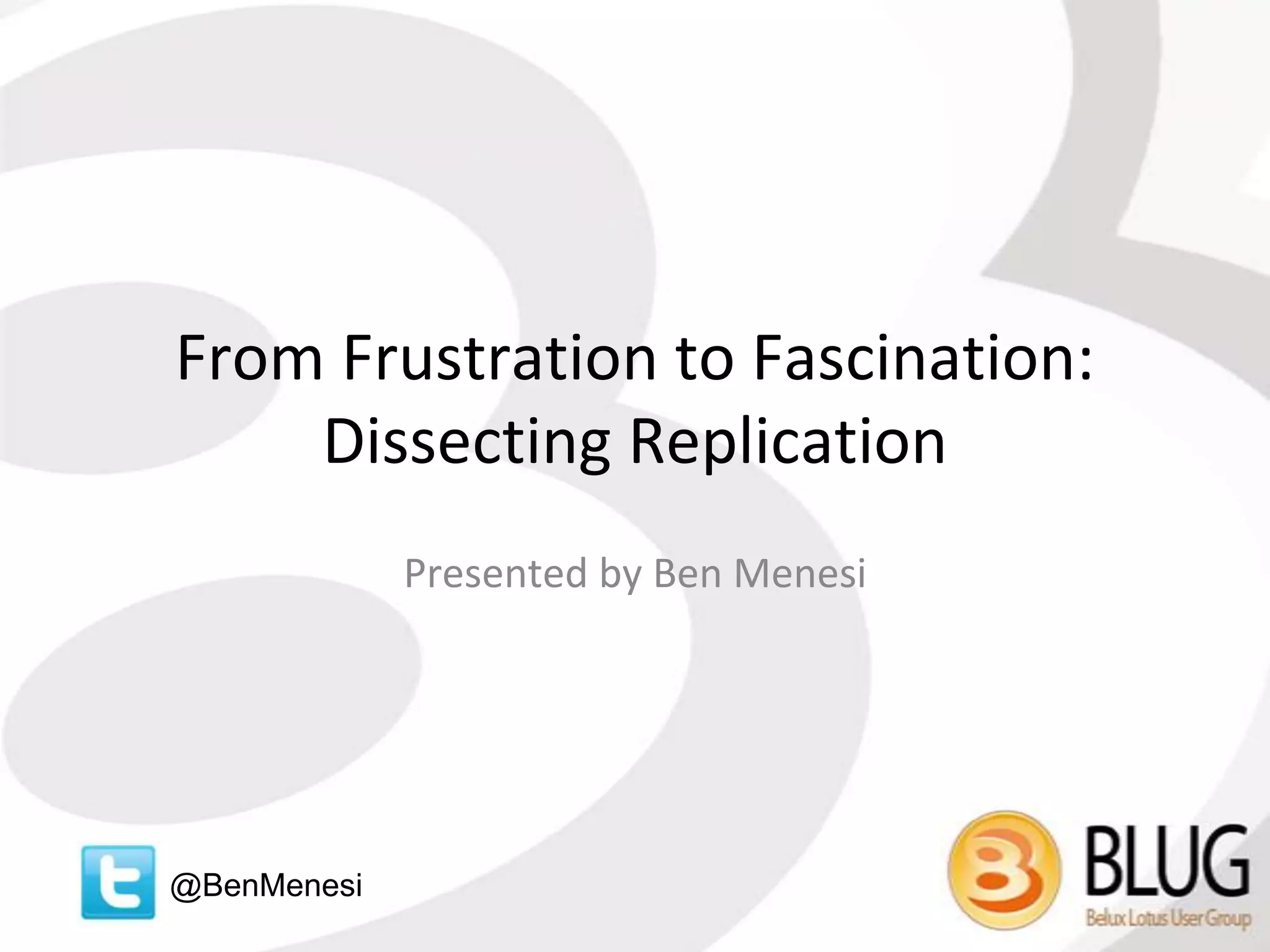 1.) The presenters will discuss replication in Domino/Notes, including the replicator server task, connection documents, and cluster replication.