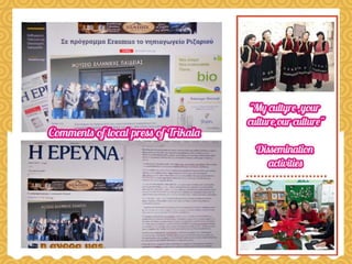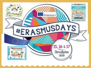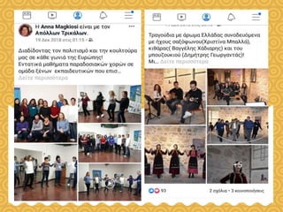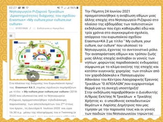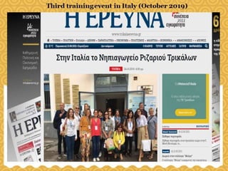 This document summarizes the events and activities of the Kindergarten of Rizario in Trikala, Greece related to their eTwinning project. It lists 7 in-person training events in various European countries from 2018-2020 as well as numerous online virtual events from 2020-2021 including online project trainings, participation in conferences on their project topic, an online symposium, and dissemination of their project outcomes. The document also mentions cultural events hosted by the school and participation in the European School Academy.