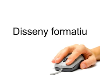 Questions didàctiques claua tenir en compte per al disseny comunicatiu Qüestions didàctiques clau a tenir en compte Format de l’entorn Disseny atractiu Fàcil navegació Gràfics (fotografies, videos, taules, gràfiques) Tipologia del nostre públic objectiu Llenguatge clar i concís Organització del contingut