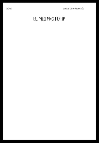 Aquest document consta de dues parts. En la primera hi ha l'explicació de l'activitat perquè d'aquesta manera la família sàpiga que es demana i puguin donar un cop de mà a l'alumne. A la segona part trobem la fitxa on els alumnes dissenyaran el seu prototip.