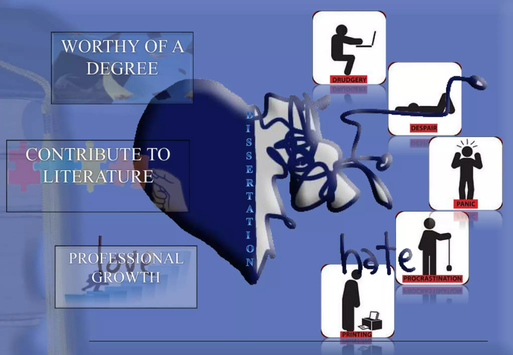 2) A thesis takes considerably less time than a dissertation, which can take much longer than expected due to the need for extensive original research.