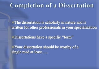 3) Dissertations require a thorough investigation of the topic, identification of research gaps, collection of original evidence and data, and make a contribution to existing literature.