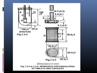 The document provides a comprehensive overview of dissolution testing, highlighting its definition, purpose, history, apparatus types, testing conditions, and acceptance criteria. It discusses in vitro-in vivo correlations and validation processes essential for assessing drug products' biopharmaceutical quality. The document also outlines proper calibration methods and general care precautions for dissolution apparatus to ensure accurate results.
