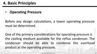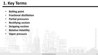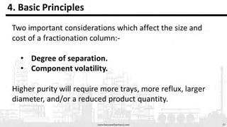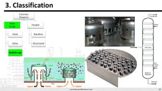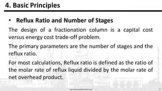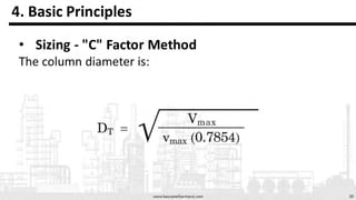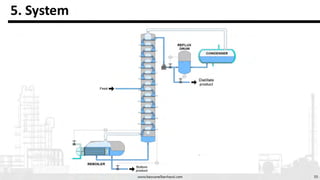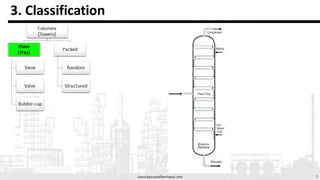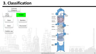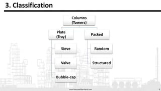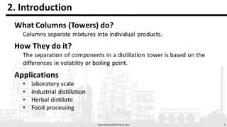 The document is an introductory guide for chemical engineers on distillation columns, covering topics like theory, selection, and sizing. It includes resources such as websites and videos explaining various types of columns. The author, Hassan M. Elbanhawi, is an experienced process engineer with an M.Sc. in chemical engineering.