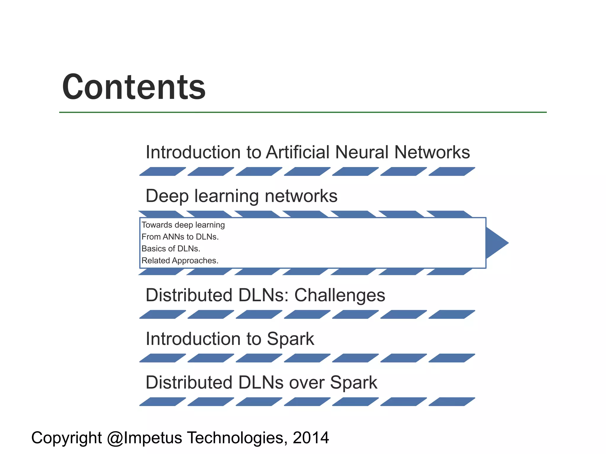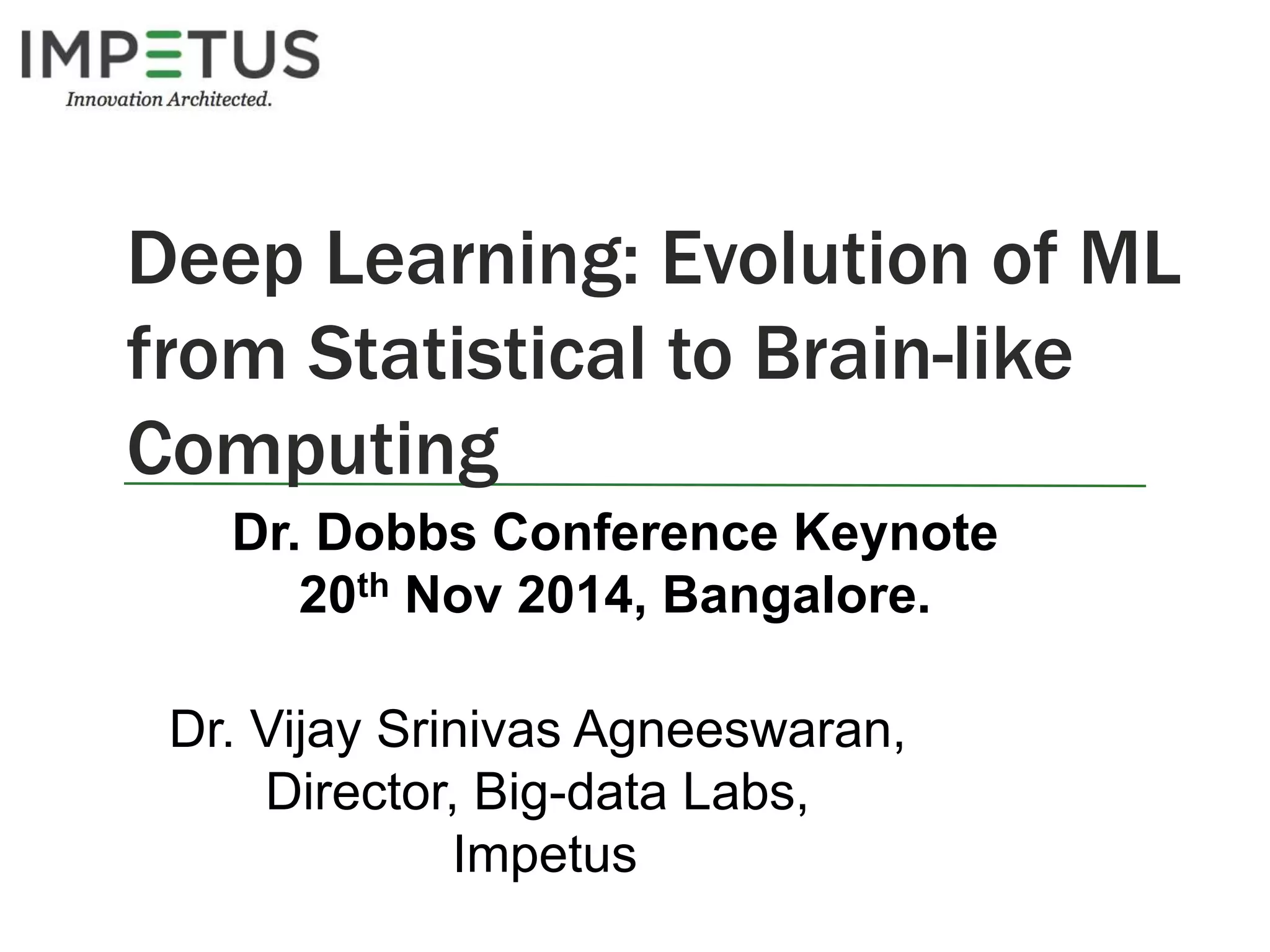 The document presents an overview of deep learning, tracing its evolution from artificial neural networks (ANN) to distributed deep learning networks (DLNs) and their applications in various fields such as speech recognition and image classification. It discusses the challenges and advantages of deep learning over traditional machine learning and introduces the use of Apache Spark for distributed computations. Additionally, it highlights notable successes and resources for implementing deep learning techniques in practice.
