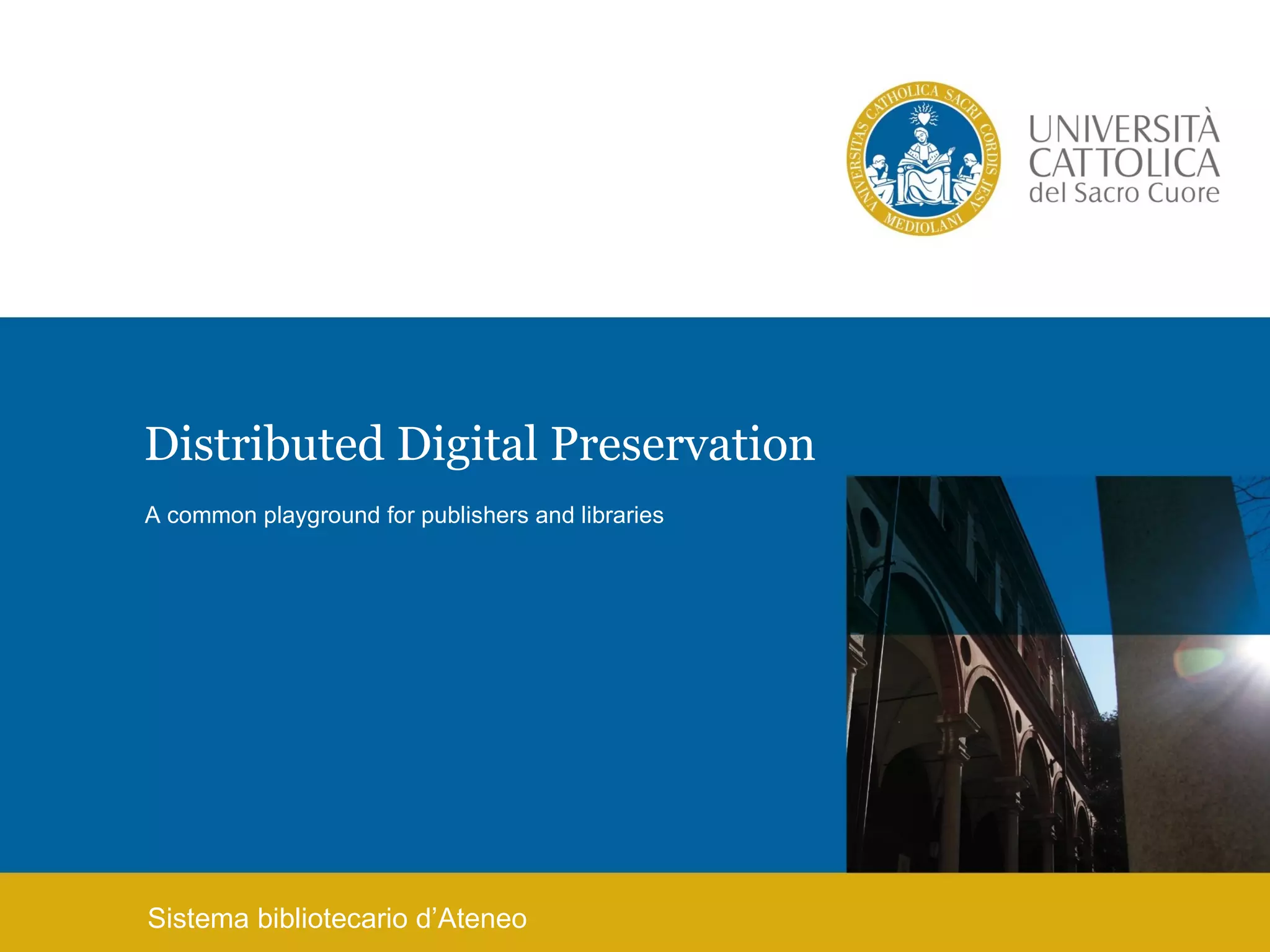 The document discusses the significance of distributed digital preservation for libraries and publishers, emphasizing the need for long-term strategies to protect digital content against loss and obsolescence. It highlights various initiatives, such as CLOCKSS and Portico, that aim to facilitate collaborative preservation efforts across institutions while ensuring access to scholarly materials even when publishers cease operations. The content underscores the importance of investment in preservation infrastructure and the ongoing commitment to safeguarding cultural heritage in the digital age.
