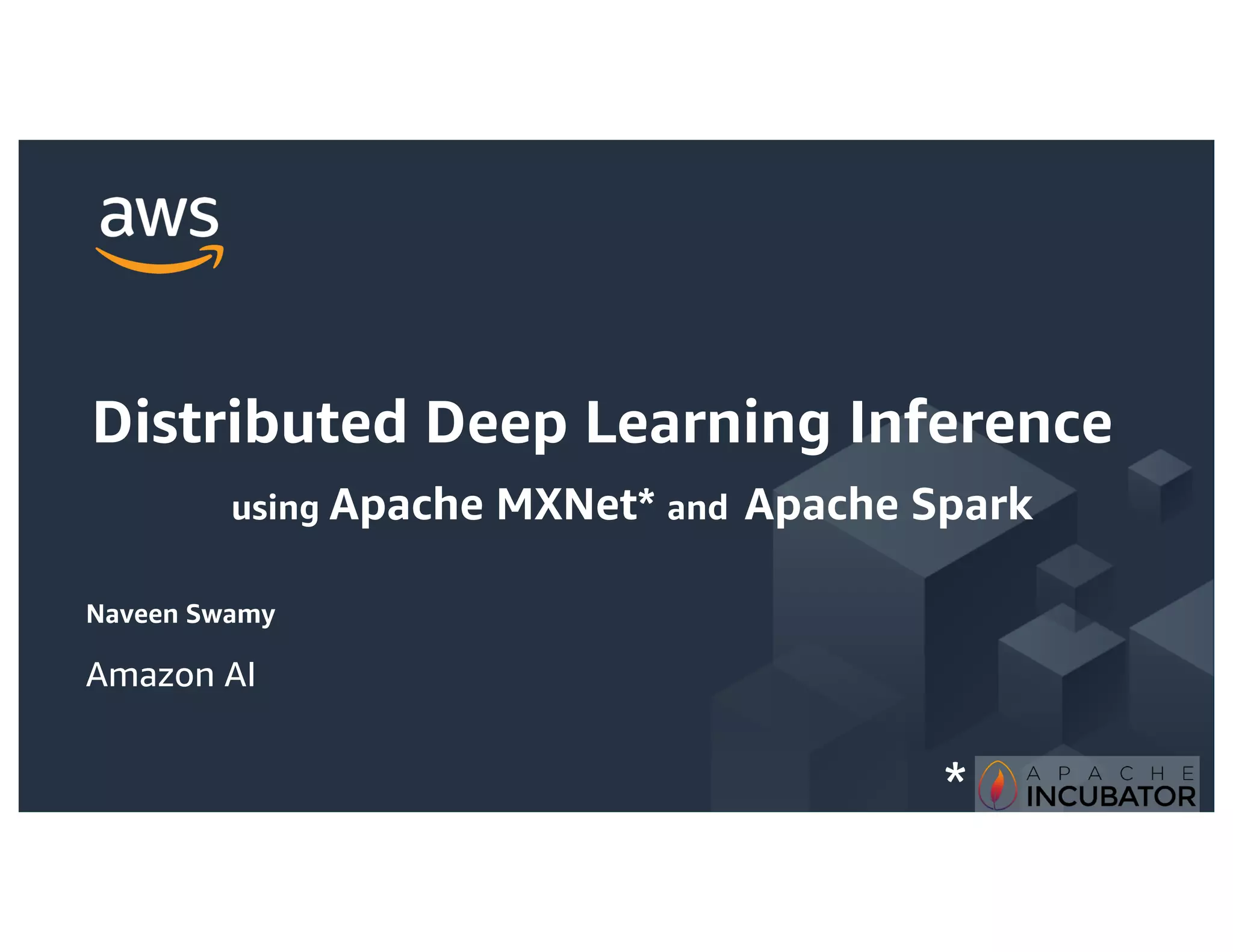 The document discusses the principles and implementations of distributed deep learning inference using Apache MXNet and Apache Spark, underlining the significance of deep learning in various sectors. It addresses different learning types, the MXNet framework capabilities, and the challenges faced in distributed inference. Additionally, it highlights future developments, including new APIs and community involvement for advancing AI.