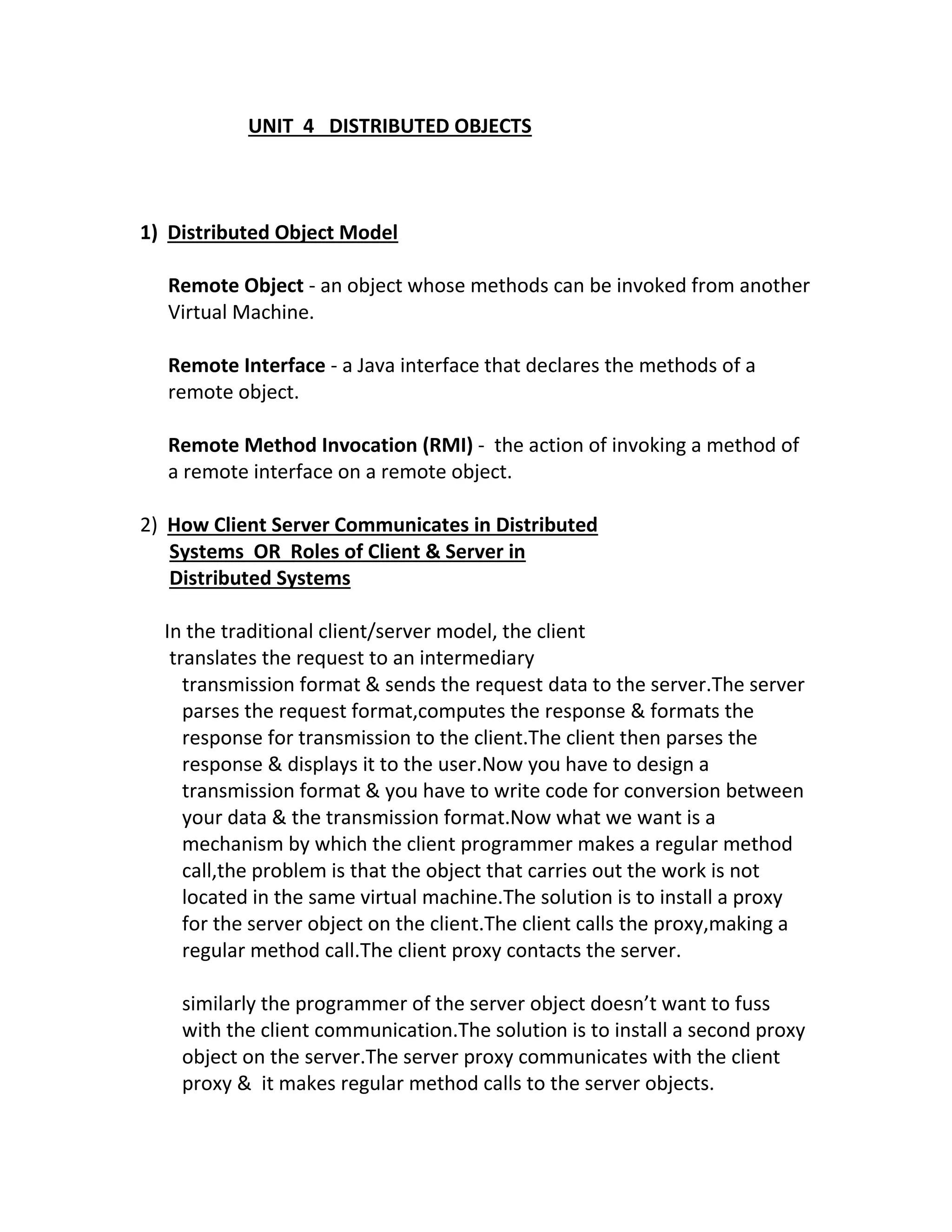 The document discusses distributed objects and remote method invocation (RMI) in Java.