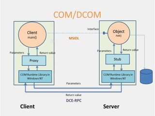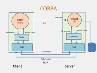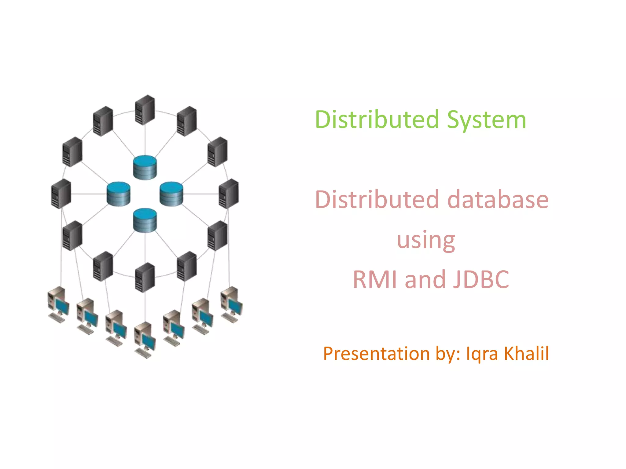 Distributed systems allow components located on networked computers to communicate and coordinate by passing messages without sharing memory. This presentation discusses distributed systems, their history, types including distributed computing systems like clusters and grids, distributed information systems, and distributed pervasive systems. It also covers middleware technologies like RPC, CORBA, COM/DCOM, and RMI that provide location transparency. Finally, it discusses distributed databases that split data across multiple locations and using JDBC and RMI to connect and query distributed databases.