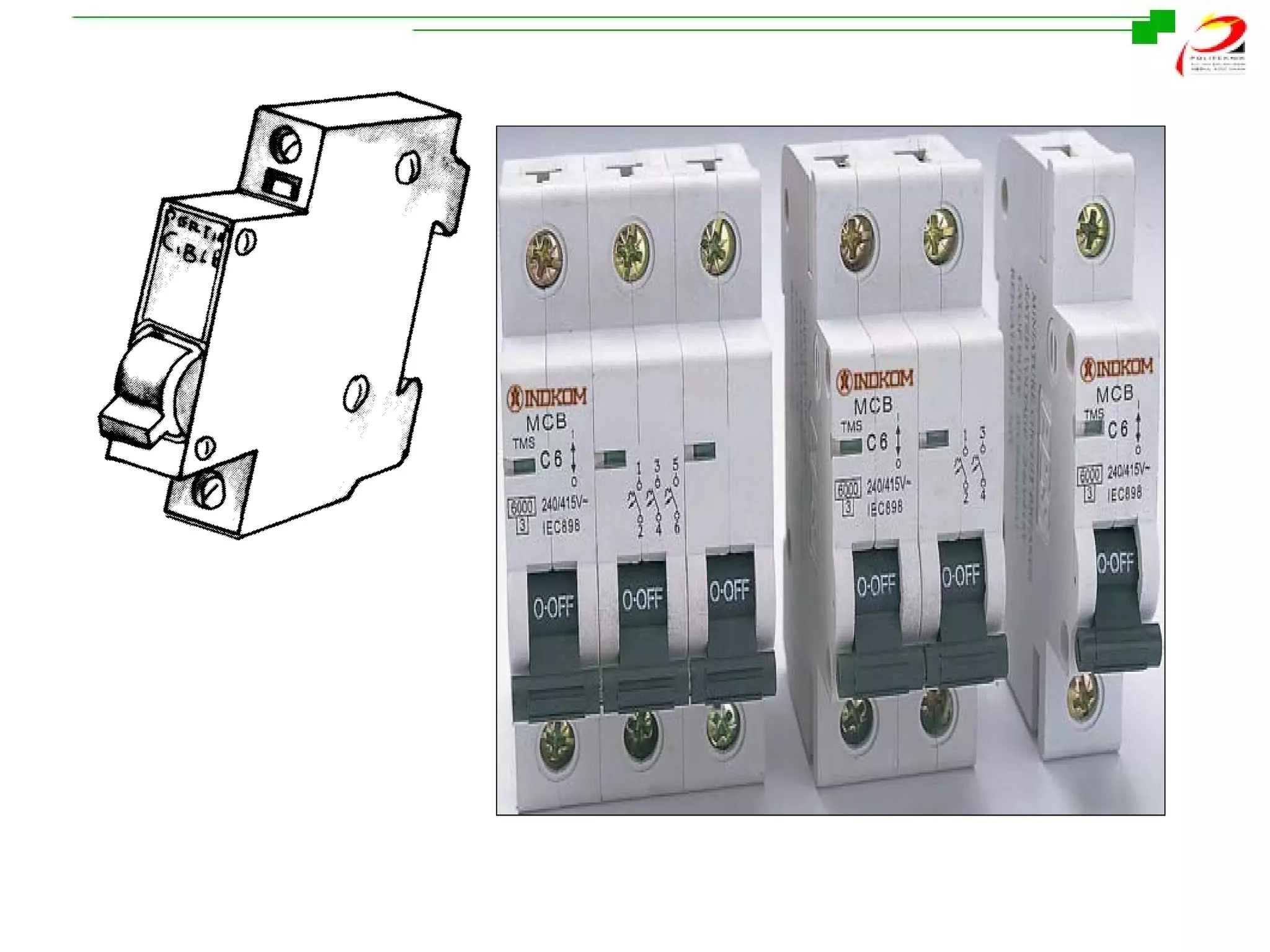 - Earth leakage circuit breakers (ELCBs) and residual current circuit breakers (RCCBs) for protection against earth faults.