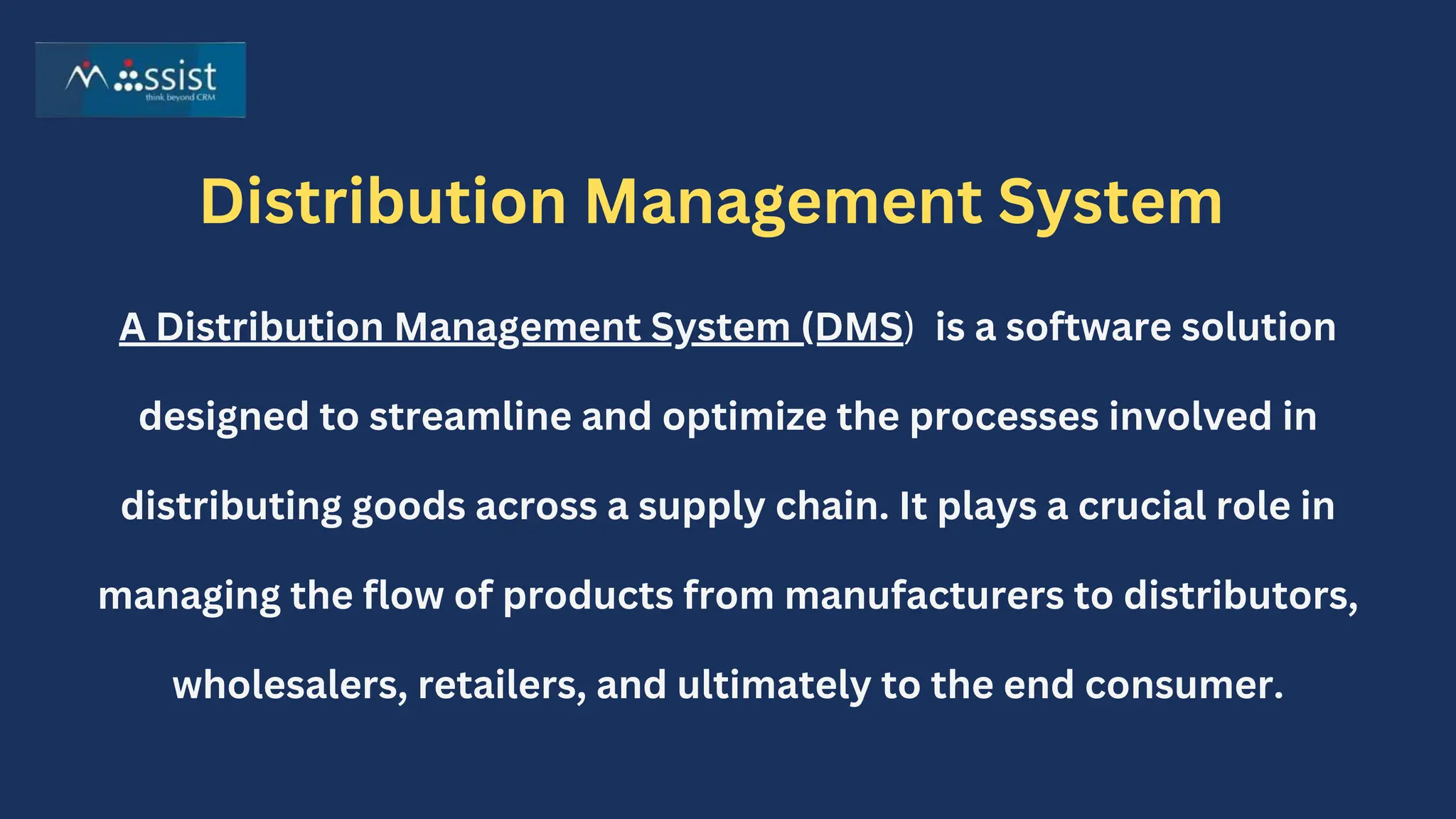 A Distribution Management System (DMS) streamlines and optimizes the distribution of goods across supply chains, enhancing operational efficiency and providing real-time visibility into inventory and shipments. Key benefits include optimized inventory management, accurate order processing, faster order fulfillment, and improved customer service, all contributing to cost savings and increased customer satisfaction. By automating processes, DMS reduces manual effort and errors, helping businesses remain competitive and responsive to demand changes.