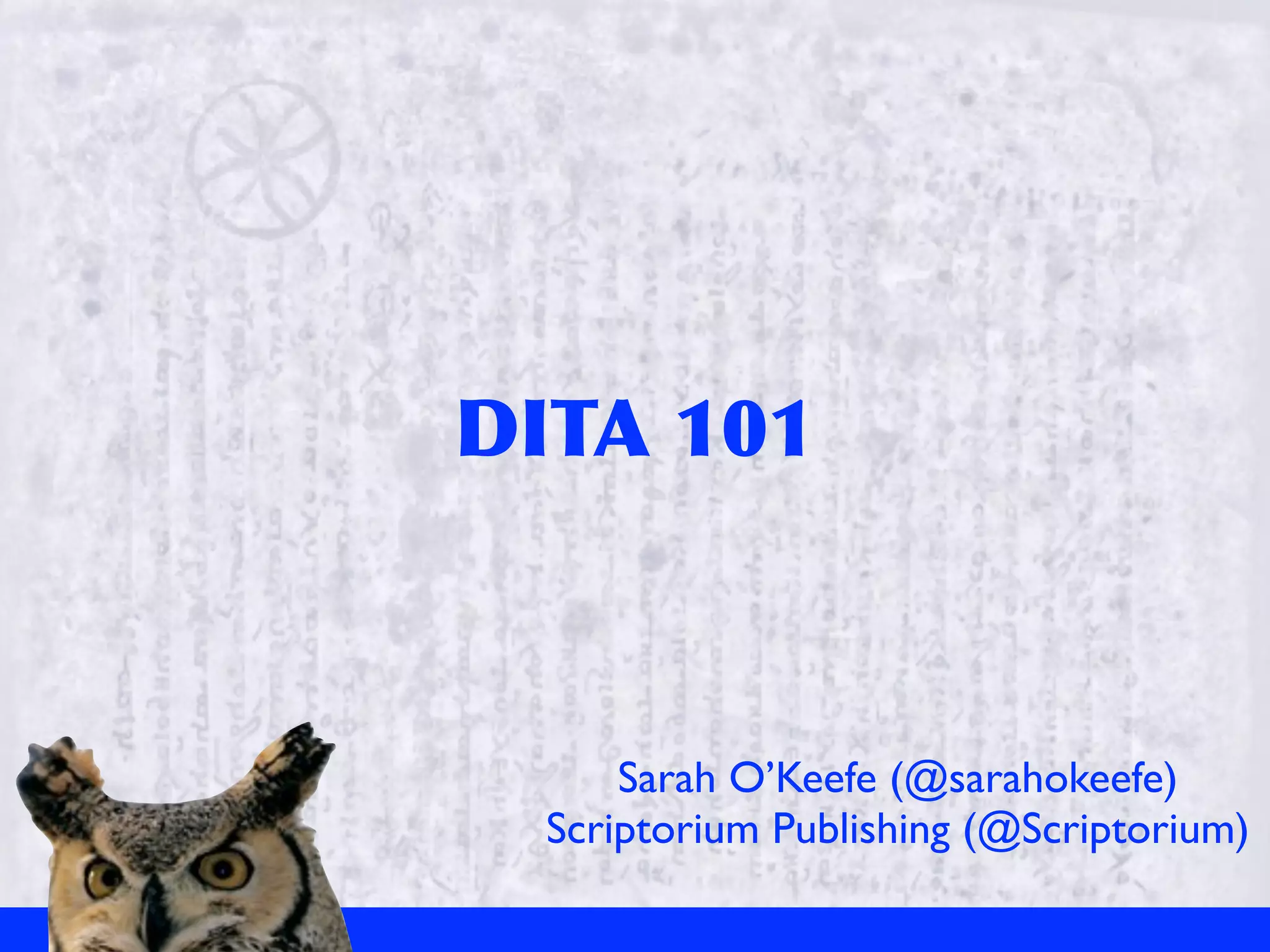 The presentation by Sarah O'Keefe introduces DITA (Darwin Information Typing Architecture), emphasizing its role in structured authoring for technical communication and its benefits for content reuse and localization. DITA is defined as an XML standard designed for topic-oriented authoring, enabling effective content creation and publishing. The document also discusses various DITA components, ideal usage scenarios, challenges, and practical examples of DITA maps and topics.