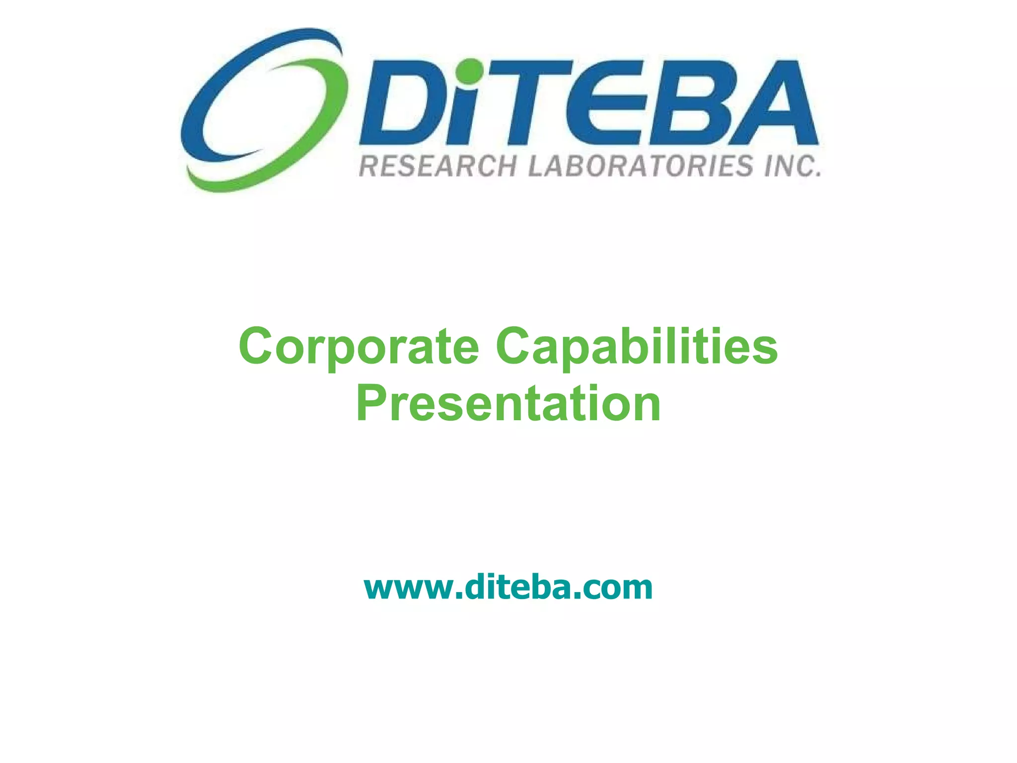 Diteba is a cGMP/GLP pharmaceutical laboratory located near Toronto, Canada that offers analytical R&D services including method development and validation, bioanalytical testing, quality control release testing, stability testing, and in vitro release testing. The company has over 10,000 square feet of laboratory space equipped with state-of-the-art instrumentation. Diteba's team of senior scientists have extensive experience across various therapeutic areas and analytical techniques.