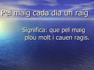 Pel maig cadadia un raig Significa: que pel maig plou molt i cauen ragis. - 3.