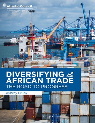 This document discusses diversifying African trade. It provides a snapshot of current African trade, which remains highly dependent on commodities, with minerals and ores making up over two-thirds of exports. While the EU and US are still major trade partners, Chinese trade with Africa has surged significantly in recent years. The report examines partnerships with emerging economies like India and Turkey that are increasing trade with Africa. It also looks at regional trade blocs and external trade policies, identifying obstacles to trade and providing recommendations to further diversify African trade and promote sustainable economic growth.