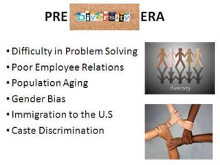 This document discusses diversity management in the workplace. It begins with a quote from Dr. Seuss describing two groups that discriminate against each other. It then defines diversity management as voluntary organizational actions to increase inclusion of employees from various backgrounds. It notes changing demographics in the workforce and the goals of diversity, such as high performance and increased productivity. It discusses key dimensions of diversity and areas impacted, such as decisions and work ethics. It describes how diversity affects human resource functions like recruitment, roles, and policies. Finally, it provides tips for promoting diversity, such as non-discrimination policies and celebrating existing diversity.