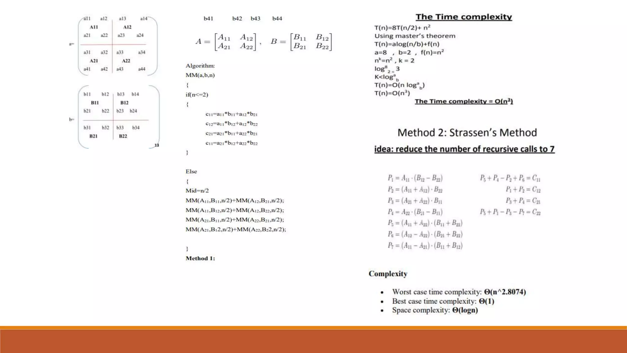 Divide and conquer is an algorithm design paradigm where a problem is broken into smaller subproblems, those subproblems are solved independently, and then their results are combined to solve the original problem. Some examples of algorithms that use this approach are merge sort, quicksort, and matrix multiplication algorithms like Strassen's algorithm. The greedy method works in stages, making locally optimal choices at each step in the hope of finding a global optimum. It is used for problems like job sequencing with deadlines and the knapsack problem. Minimum cost spanning trees find subgraphs of connected graphs that include all vertices using a minimum number of edges.