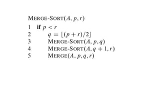 • MERGE(A, p, q, r), where A is an array and p, q, and r are indices into the