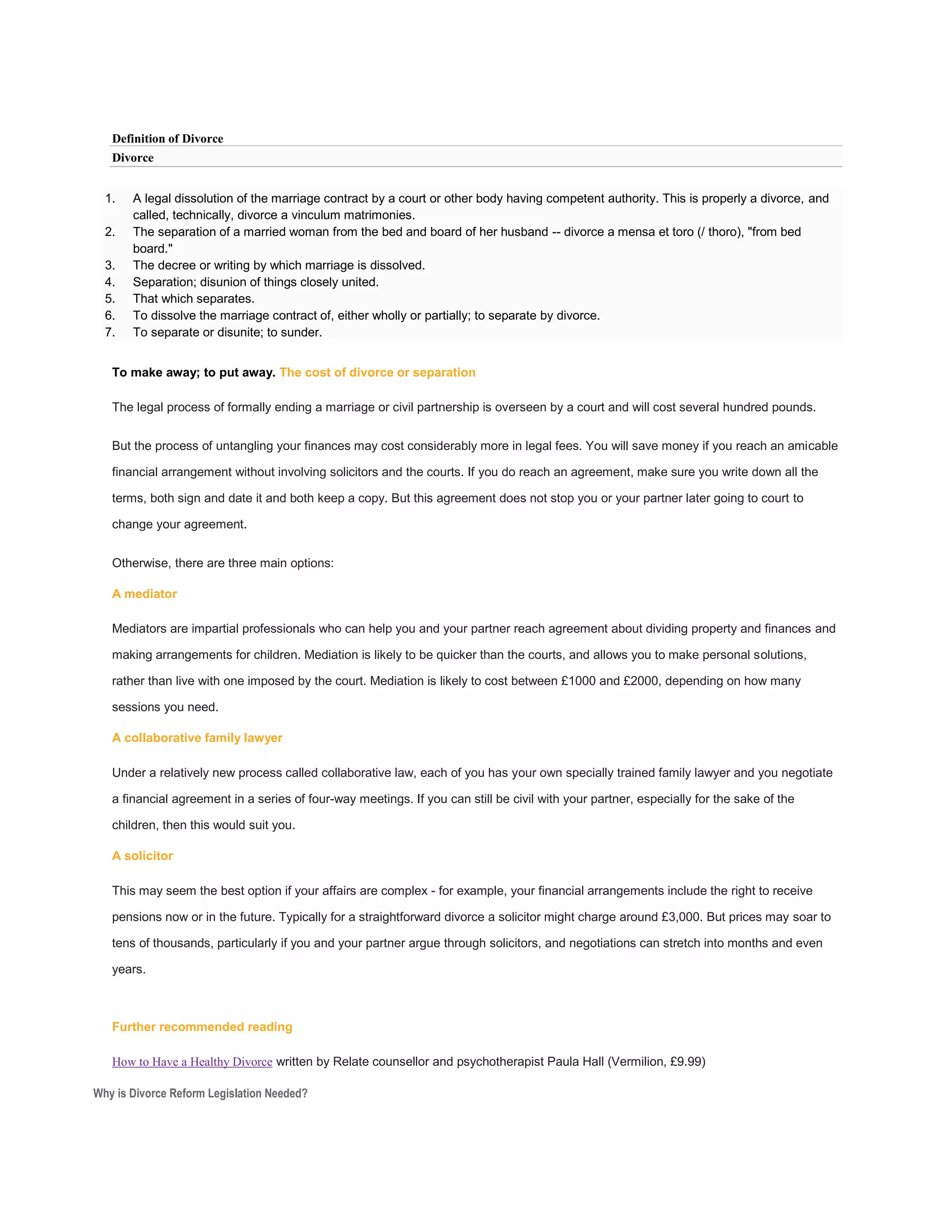 This document discusses divorce and the need for divorce reform legislation. It provides background on divorce rates in the US being the highest in the world despite high levels of religious affiliation. It notes several negative impacts of divorce on children including higher rates of emotional, behavioral and physical abuse problems. The document also discusses the taxpayer costs of divorce being at least $112 billion annually when factoring programs like welfare, Medicaid and more. Overall it argues divorce reform is needed to help reduce the harms and costs of divorce to families and society.