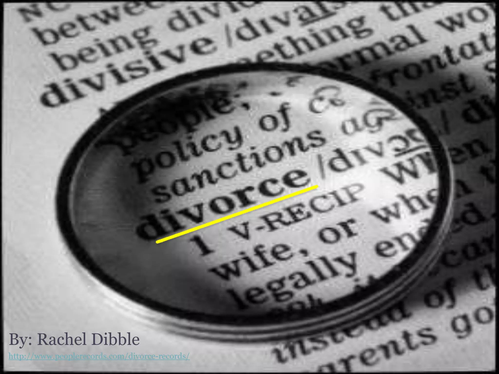 Divorce laws have evolved over centuries from only allowing divorce for causes like adultery to broader acceptance and regulation of divorce through state laws. Currently about half of first marriages in the US end in divorce. Divorce affects both parents and children, with common parental issues including emotional distress, unhealthy coping habits, and social isolation. Children of divorce often experience lower self-esteem, difficulty with relationships, feelings of responsibility for the divorce, and behavioral or academic problems. Effective co-parenting with open communication helps children adjust after a divorce.