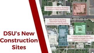 DSU has experienced the second highest growth rate in student headcount among Utah universities. A new science building is proposed in DSU's approved campus master plan to support additional students in science programs. The building site is located near existing and planned pedestrian paths and parking areas according to the master plan.