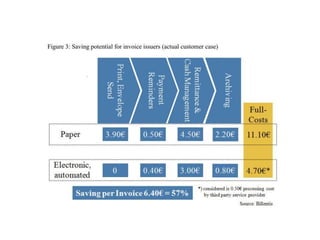 This document discusses the benefits of electronic data interchange (EDI) for businesses. It notes that companies don't buy barcodes but rather a way to identify their products. It suggests that EDI can streamline processes like invoicing by allowing 80% of transactions to be done electronically instead of through paper and post. The document provides an example of how EDI could improve an invoicing process. It also notes that sharing information between businesses through EDI is more powerful than any one business having the information. The document concludes by thanking the audience and asking if there are any questions.