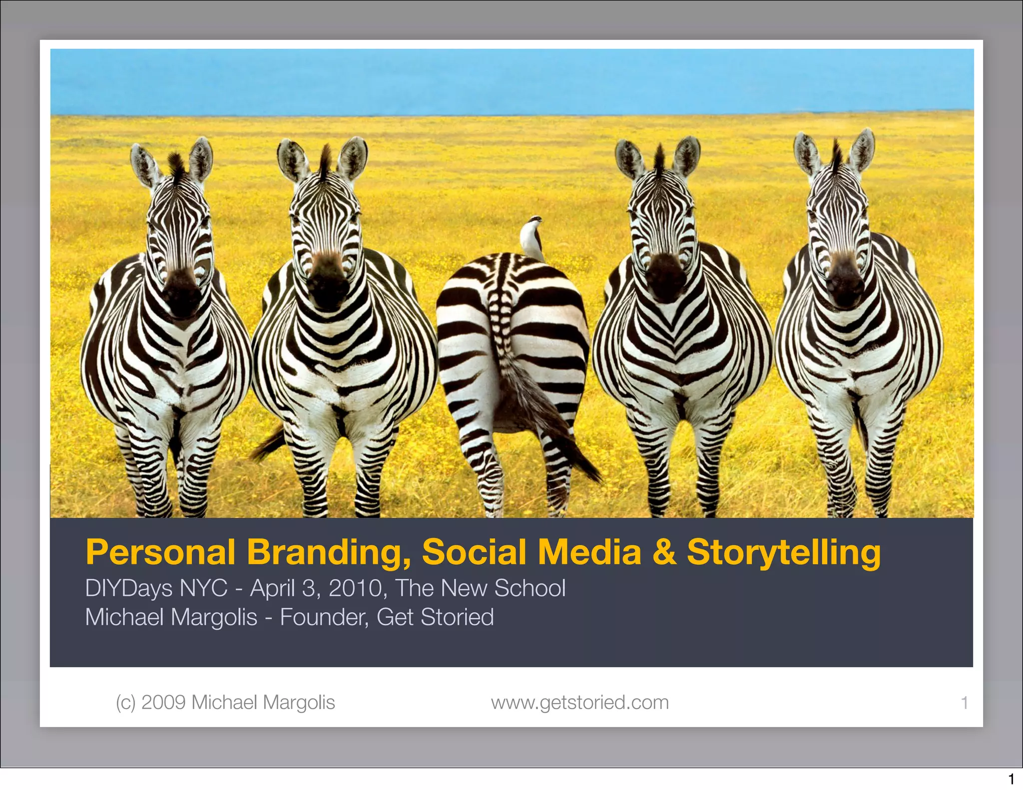 The document discusses personal branding, social media, and storytelling, emphasizing the importance of crafting a compelling narrative to garner belief and support for one's ideas. Michael Margolis, the founder of Get Storied, shares insights on how everyone can be a storyteller and suggests methods for finding and sharing one's authentic story. It also highlights the role of empathy in understanding both the storyteller's and audience's perspectives, encouraging individuals to engage with their audience's motivations and experiences.