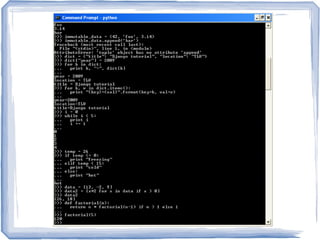 1. Python fundamentals like variables, operators, data structures, and classes.