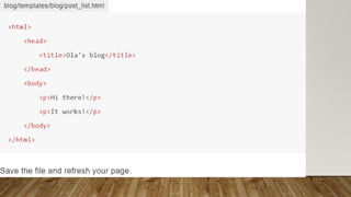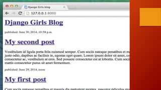 This document provides an overview and introduction to Django Girls training on Django and web development. It covers the following key points: