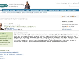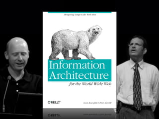 This document discusses information architecture and its goal of helping people navigate information effectively. It defines information architecture as structuring information to facilitate intuitive access to content. The document also discusses how information architecture involves designing information presentation, navigation systems, and taxonomies to organize relationships between entities, labels and categories. Finally, it notes that good information architecture aims to make interfaces "be good" by aligning with business goals and user needs.