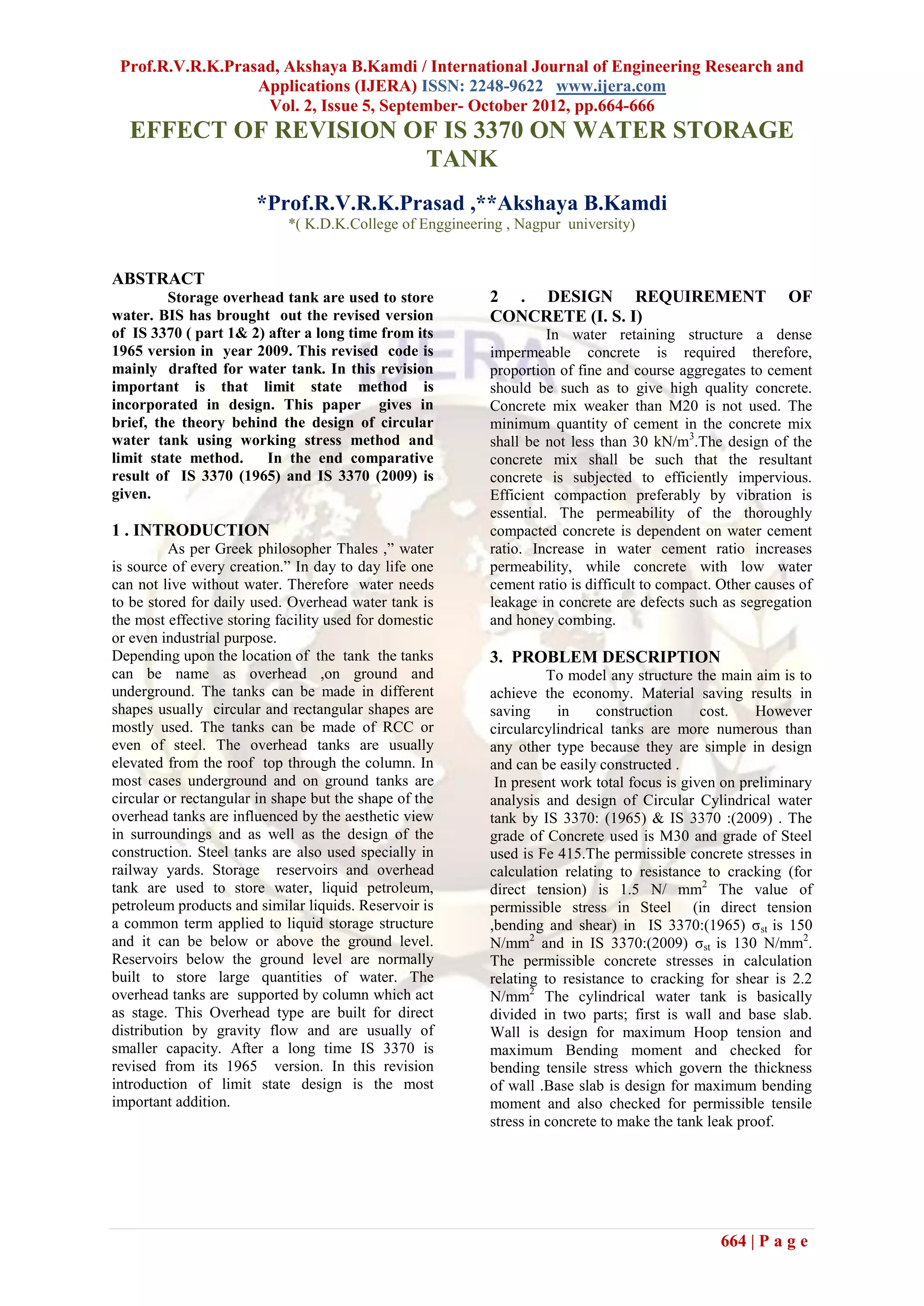 The document discusses the revisions made to IS 3370 regarding water storage tanks, focusing on the shift from the 1965 version to the 2009 version. It emphasizes the introduction of limit state design principles and the necessity of ensuring the permeability and structural integrity of concrete used in constructing these tanks. The document also outlines design methods for various components such as walls and domes, while detailing permissible stress limits for materials.