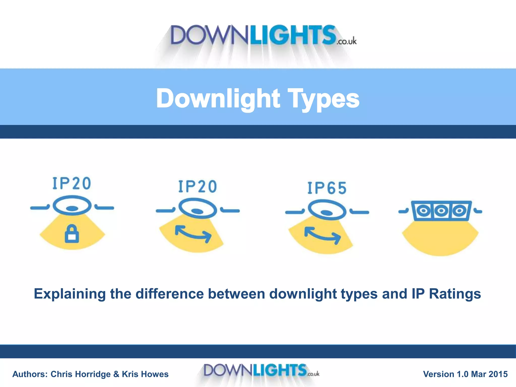 The document outlines various types of downlights available from a UK distributor, detailing their features, usages, and IP ratings for water resistance. It covers fixed, adjustable, square, and trimless downlights suitable for different environments such as lounges, bedrooms, and kitchens, emphasizing their performance in moisture-prone areas. Each type is rated for its resistance to water and dust, aiding consumers in making informed choices for their lighting needs.