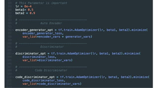 alpha-GANはGenerative Adversarial NetsとVariationalAuto Encoderを組み合わせた⼿法。