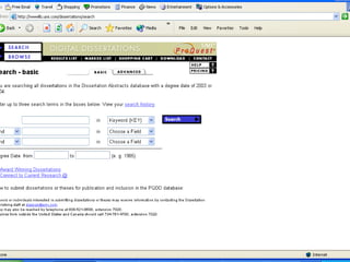 เว็บฐานข้อมูลวิจัยในต่างประเทศ UMI http://wwwlib.umi.com/dissertations/search