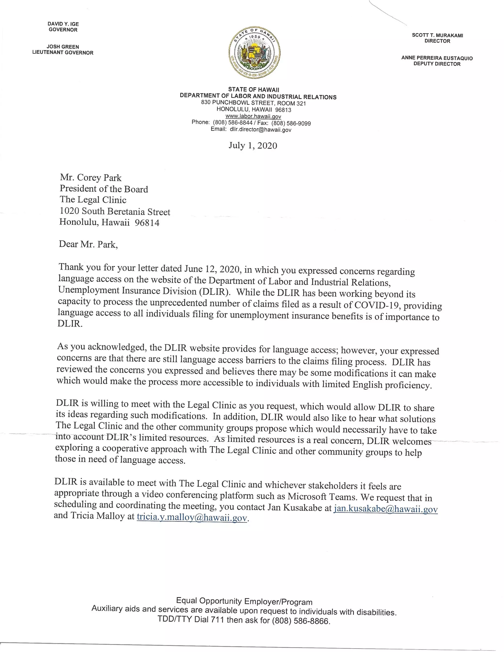 Language Access Letter To DLIR