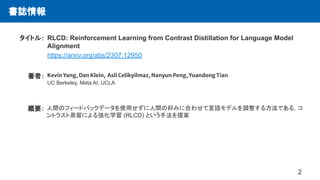 • Reinforcement Learningwith Human Feedback (RLHF) は,人間の好みに合わせて